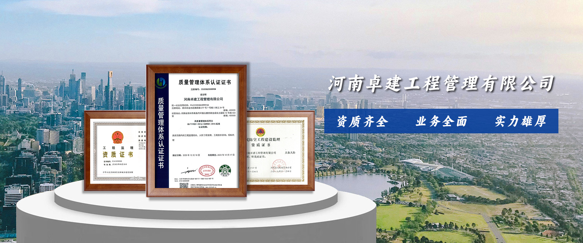 河南卓建工程管理有限公司(前身名為河南卓建建筑工程監(jiān)理有限公司)是經(jīng)鄭州市工商行政管理局批準,成立于2011年,經(jīng)營業(yè)務范圍包括建筑工程監(jiān)理、工程監(jiān)理、工程項目管理、招標代理、造價咨詢等,具有工程監(jiān)理綜合資質(zhì)、人防工程丙級資質(zhì)、造價咨詢資質(zhì)乙級。公司已通過質(zhì)量管理體系認證、職業(yè)健康安全管理體系認證、環(huán)境管理體系認證,公司是河南省監(jiān)理協(xié)會會員單位。